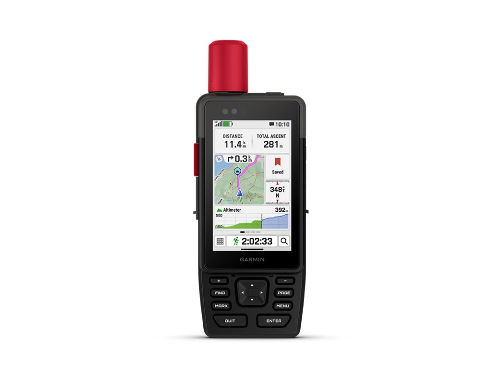 Integrovaná satelitní komunikace inReach umožňuje posílat textové zprávy, hlasové zprávy i fotografie v místech bez mobilního signálu (vyžaduje aktivní předplatné). V případě nouze lze stiskem SOS tlačítka kontaktovat nepřetržité záchranné centrum Garmin Response, které obdrží i přesné souřadnice. Přes službu LiveTrack může navigace sdílet aktuální trasu, vzdálenost či nadmořskou výšku s rodinou nebo přáteli.