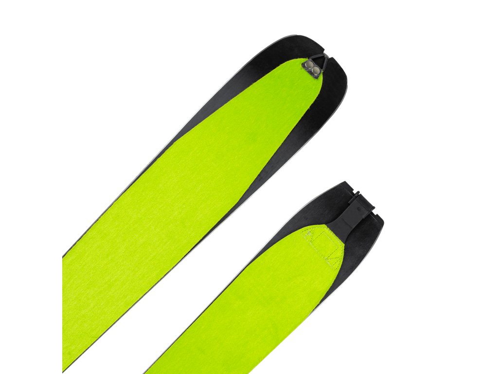 Na špičce je použitá lehká závodní fixace pro rychlé a jednoduché nasazení, patka je řešená stahovacím páskem, který umožňuje doladění délky. Díky tomu lze pásy v praxi použít i na jiné skialpové lyže s podobnou šířkou do cca 82 mm, pokud odpovídá tvar špičky a délka lyže.