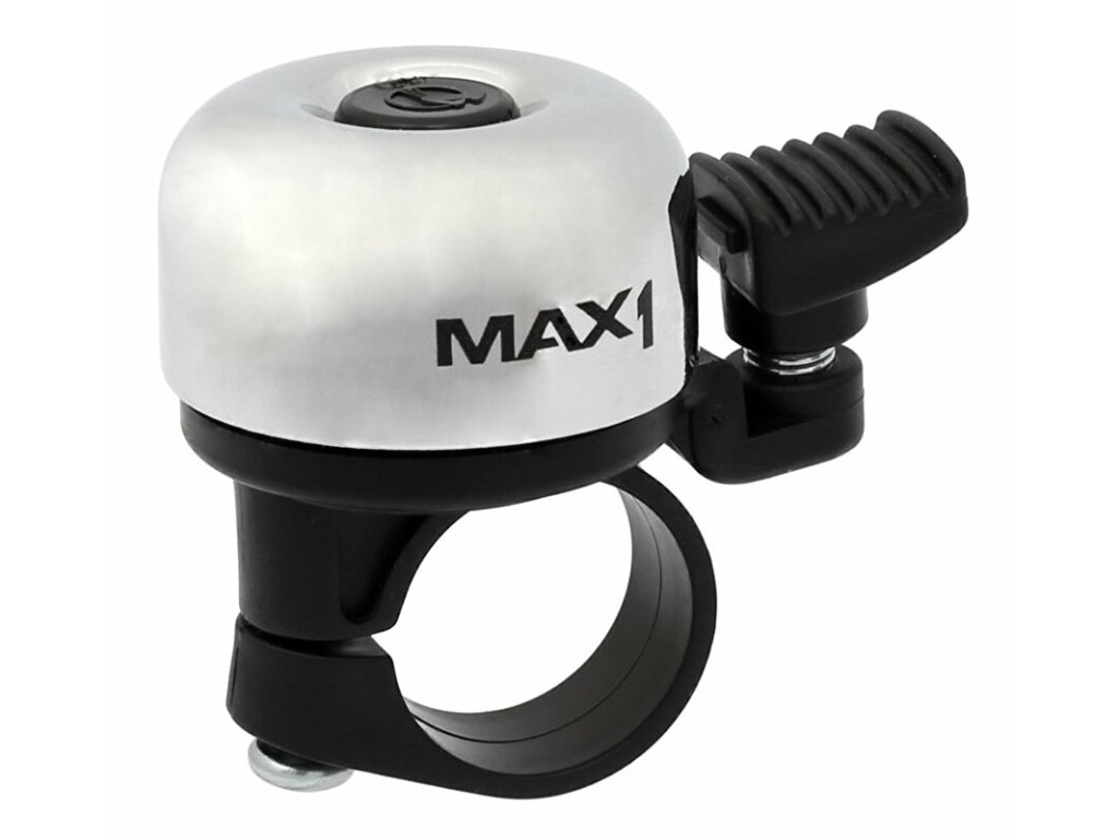 Zvonek na řidítka MAX1 Mini s otočnou paličkou v 360 stupňovém úhlu. Na řídítka o průměru 22.2 mm